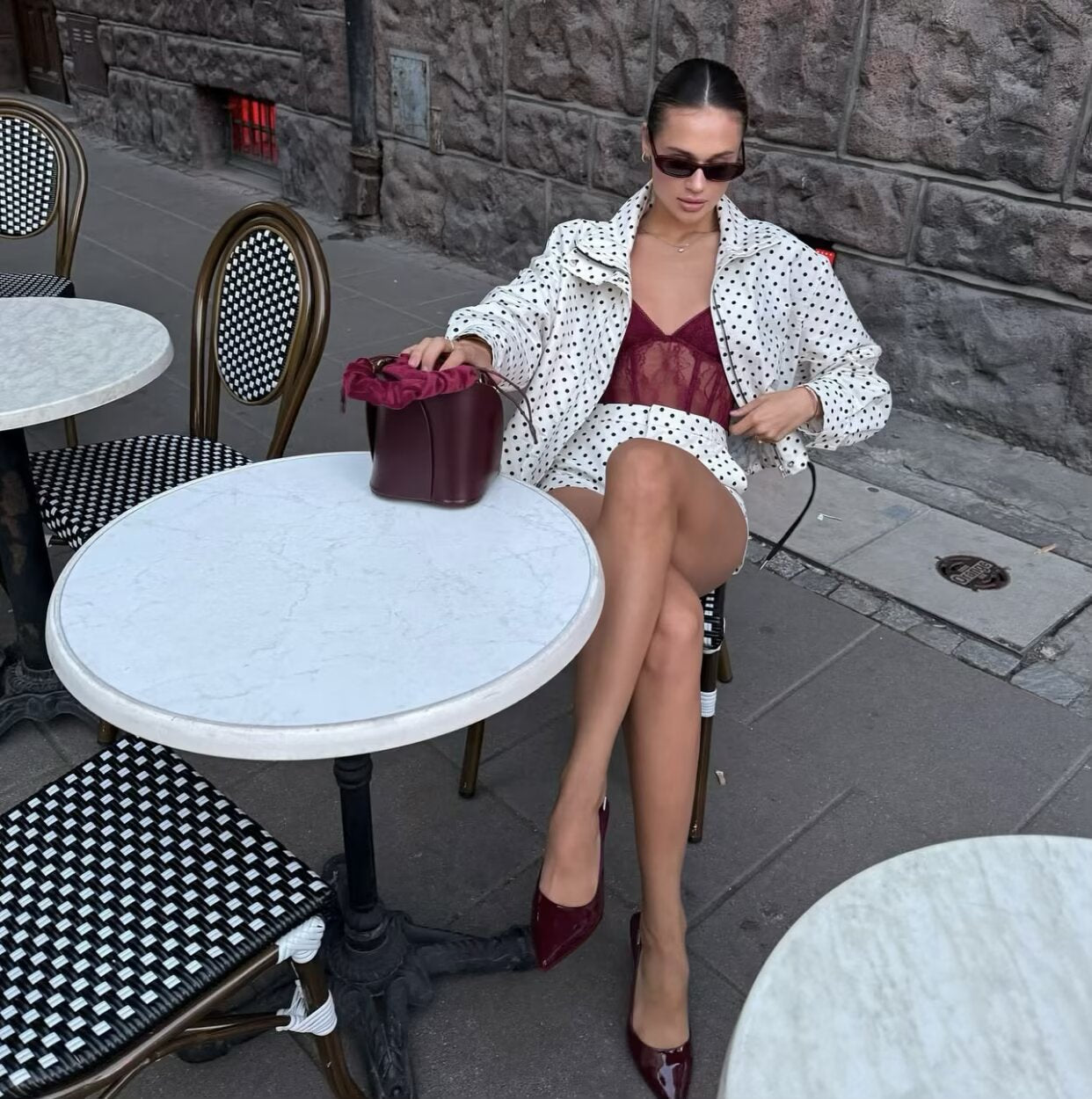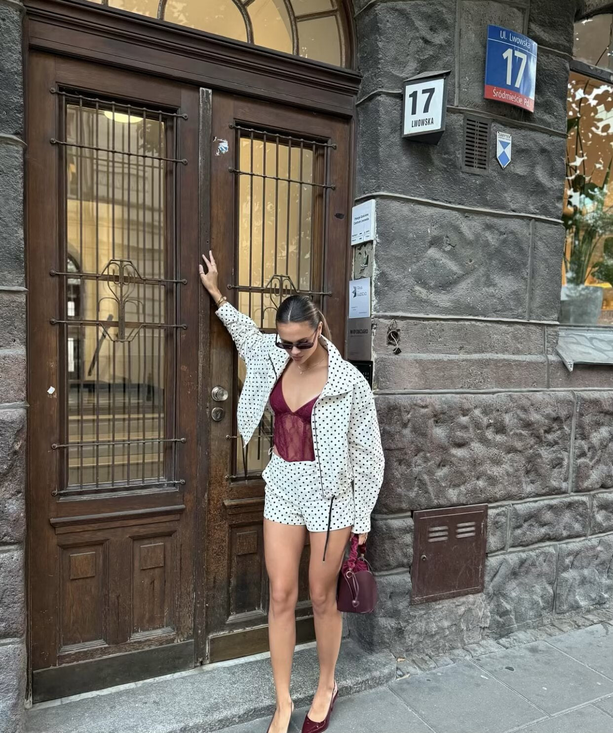 This two-piece set combines comfort and style. The relaxed button-up shirt and matching shorts are made from lightweight cotton, perfect for warm days. The playful black-and-white polka dots bring a timeless look that fits casual outings, weekends, or travel days. Wear it together for a statement outfit or mix the pieces for endless combinations.